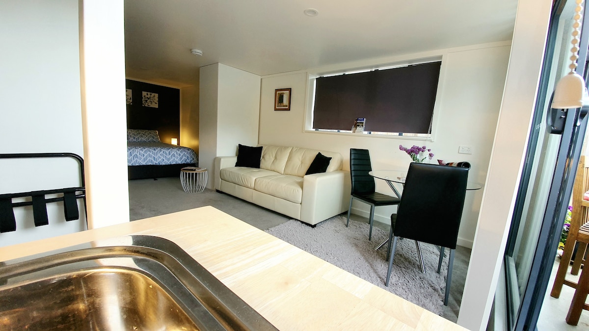 Studio Apartment with private entry. 5 min walk to Cataract Gorge , 15 mins walk or 5min drive to the City. Due to proximity to Gorge the streets are quite steep. Self-contained, QS bed, lounge and dining suite. Bright and modern. Suit single traveller/couples. WiFi and Smart TV for Netflix access Cook meals in the kitchenette ( M/W, Convection oven with hotplates ) or stroll to the Gorge and grab a coffee at the kiosk. Price incl...NO CLEANING FEE CCTV at entry , covering the parking area.