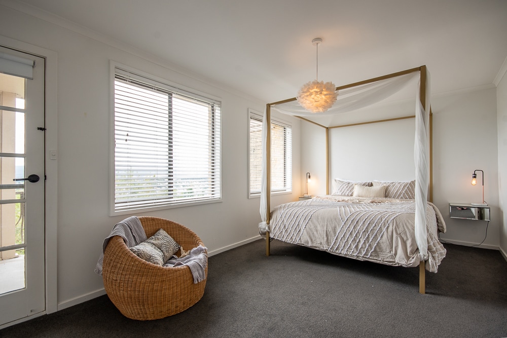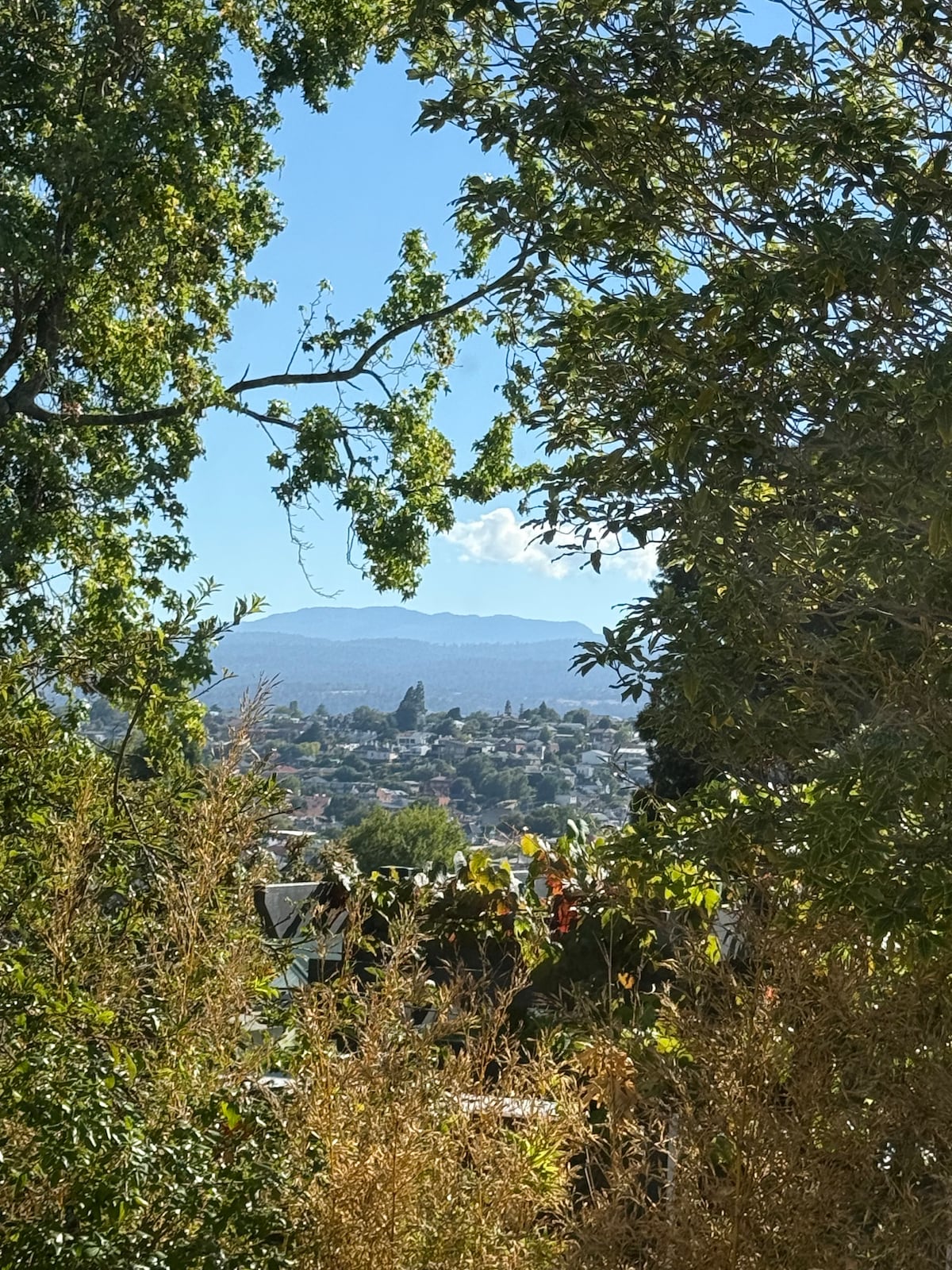 A stylish, sun-filled townhouse just minutes by car from the city centre. Stunning views of Launceston and the Tamar River can be seen through the treetops and in the distance forested mountain slopes. Across the road, a trail leads down Cataract Gorge. The classy, well-stocked library has a comfy sofa, and a dedicated workspace with desk and chair. A sunny deck beckons. Fast wifi and Smart TV with streaming services are available. Eclectic, original art throughout.