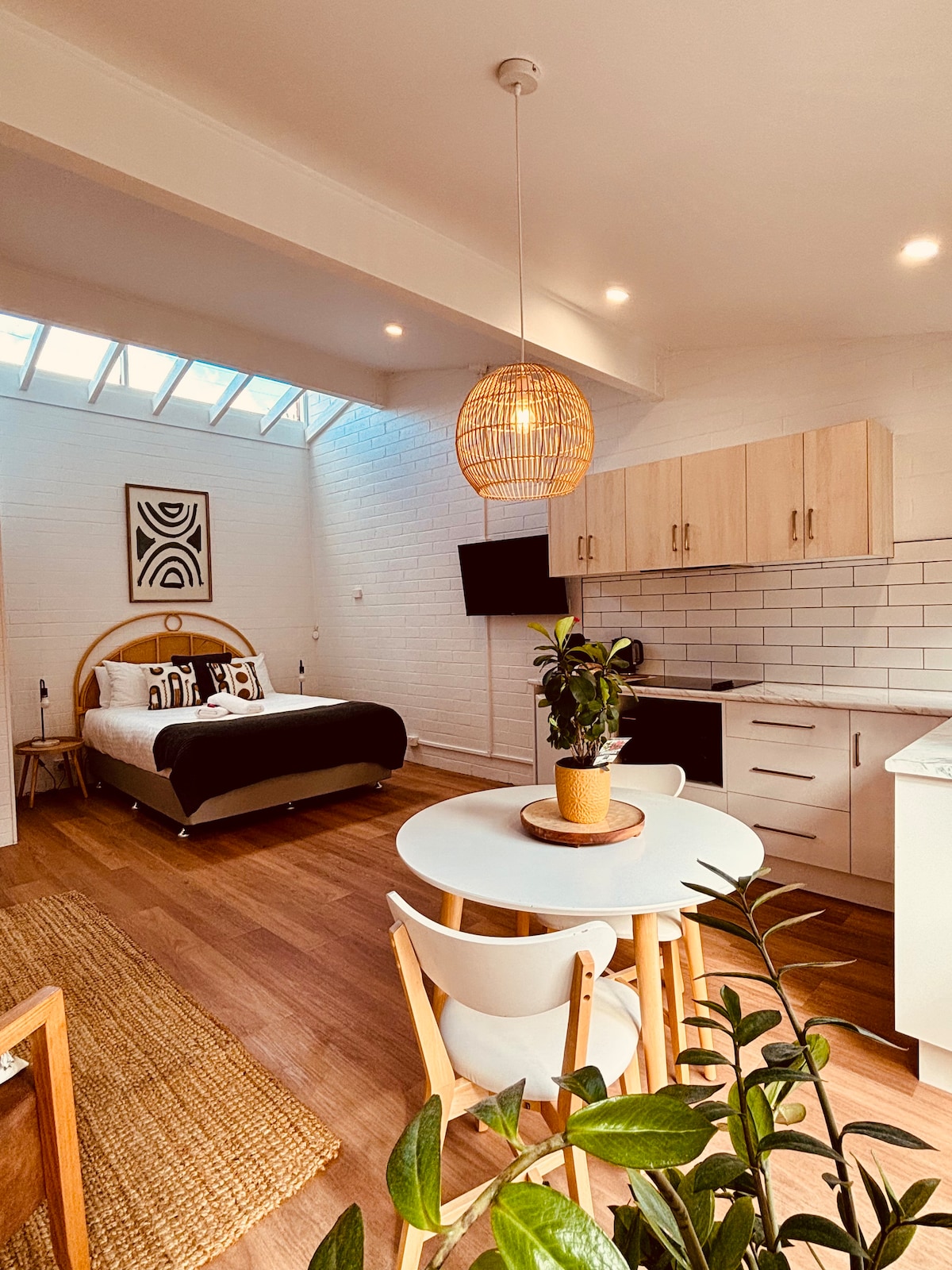 A self-contained studio apartment which has just been fully renovated. Located close to the CBD, the studio is suitable for couples or single travellers, and is ideal accommodation whether visiting for business or leisure. It’s a great base from which to explore Launceston and it’s surrounds. The studio has a compact, well equipped kitchen. Stylish Scandinavian furniture provides comfort when it’s time to relax. Milk, bread and jam provided for breakfast.