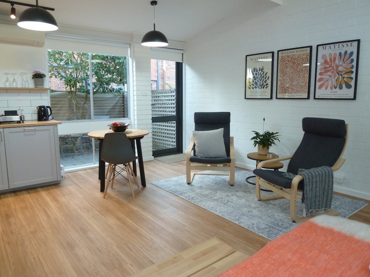 1.5 klms to the CBD, less than 1 klms to the Launceston General Hospital. It is a delightful space suitable for couples or single travellers perfect for holidays, weekend travel or business accommodation. Everything is brand new boasting quality furnishings with a modern, fresh scandi style. Bread, milk and condiments provided for your breakfast (min 2 night stay).