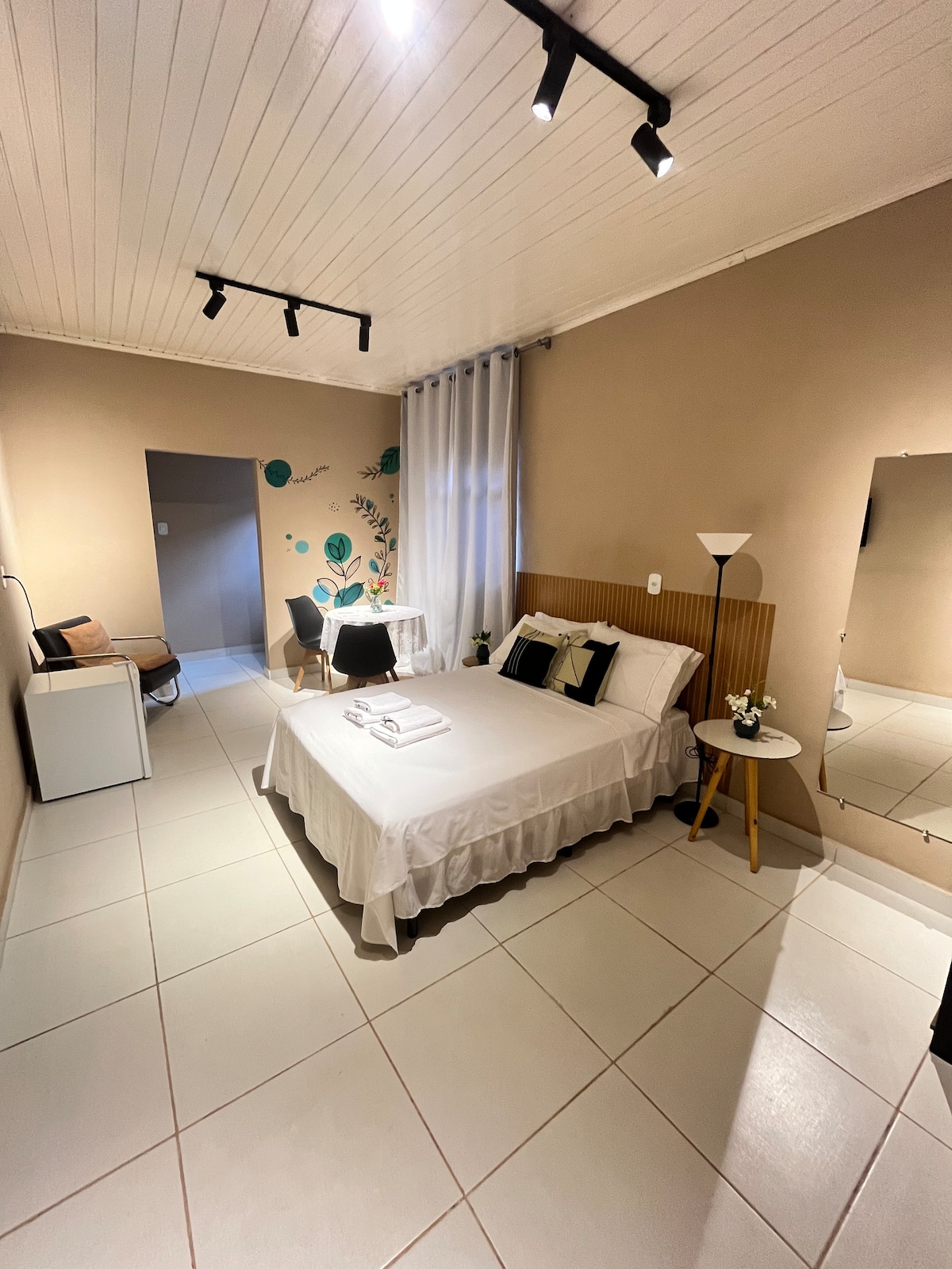 Esqueça de suas preocupações neste lugar espaçoso e tranquilo. Equipado com Tv a cabo e Internet para vc próprio se conectar aos seus app contamos tbm com uma mini cozinha,contendo frigobar, fogão, Airfryer, mistéira e utensílios, disponibilizamos roupa de cama, toalhas e ainda pó de café com açúcar para vc mesmo fazer seu café da manhã. venha conhecer nosso cantinho.