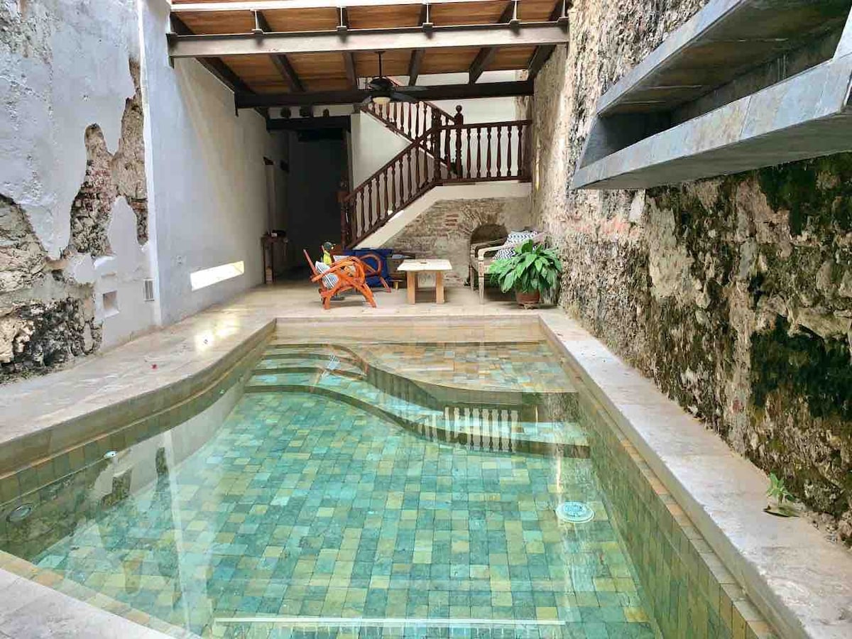 Ciudad amurallada Magnifica casa de cuatro niveles exclusivos para los huéspedes. Con una pequeña piscina privada en la Azotea. Ubicada en el centro histórico de la ciudad amurallada de Cartagena cerca del restaurante Baruco, bares, galerías, casa de la inquisición, plaza botero, torre del reloj, tiendas, farmacias, arte con un mirador espectacular.