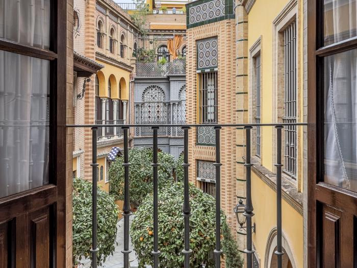It's a cozy studio apartment 40 sq mts. It’s located in the heart of Sevilla and has stunning view of the Cathedral and “La Giralda”, just in the emblematic environment of Cathedral-Giralda-Reales Alcázares-Archivo de Indias, 5 min walk to “La Maestranza” bullfight ring and 1 min walk to the city council. Furthermore it’s in the entrance of the picturesque quarter of “Barrio Santa Cruz”. Finally, very close there are the most important shopping area of Sevilla and important bars and restaurants.