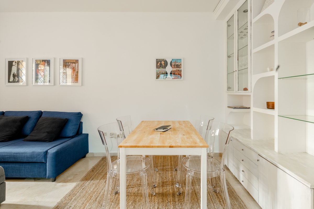 3 minutes to Alcazar 6 minutes to Cathedral, Giralda 10 minutes to Plaza de España 12 minutes to Torre de Oro, river - Quiet property - Extra fast WIFI - Central A/C in every room - Capsule coffee maker - Accesible by car, no parking in property This apartment is part of the historical Casa de Alfaro dating 500 years back. It offers a private and homely atmosphere while being extremely close to all monuments.