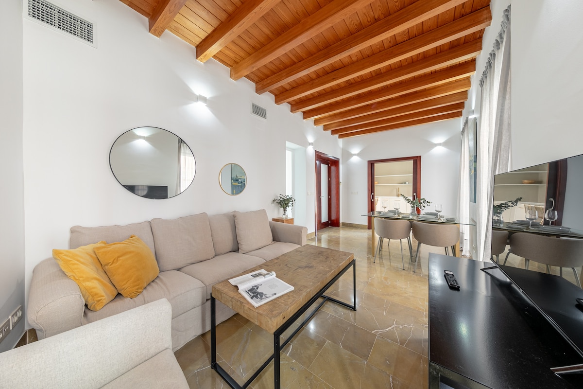 Experience the best of Seville from this premium flat located in the historic Barrio Santa Cruz. Steps away from the Alcázar, the Cathedral, and vibrant tapas bars. This apartment places you in the center of Seville's rich culture and lively atmosphere. Dive into an urban oasis where rustic charm meets industrial modernity. This renovated apartment in Sevilla, with access to a shared rooftop pool, is a space where comfort and aesthetics unite to create an unforgettable accommodation experience.