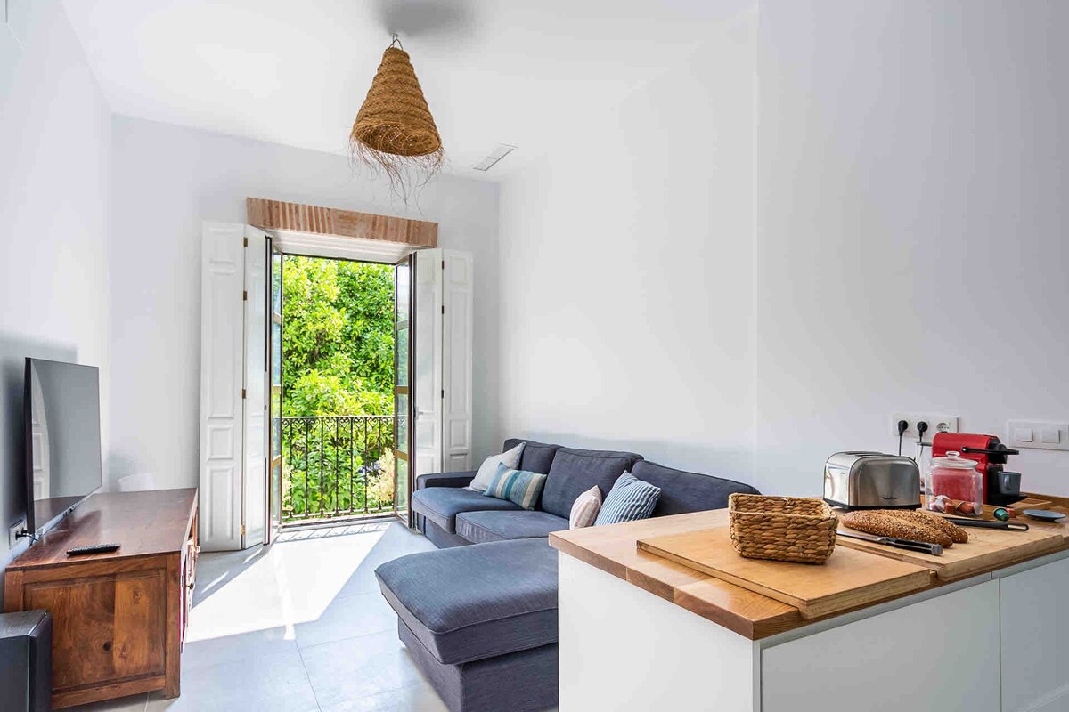 Amplio, moderno y cómodo apartamento recientemente rehabilitado y totalmente equipado, decorado al detalle; ofrece un espacio ideal donde pasar una agradable estancia. Disfruta de la comodidad de un amplio apartamento de estética contemporánea situado en el corazón de Sevilla. Sus salas amplias y luminosas crean una atmósfera elegante. Ubicado en calle peatonal, sin ruidos, con balcón a la calle Francos por donde pasan numerosas cofradías en Semana Santa. A tres minutos andando de la catedral. Apartamento situado en edificio muy tranquilo, perfecto para descansar después de una larga jornada de turismo. Primera planta con ascensor. Dispone de una habitación con cama de 1,50 x 2,00, armario empotrado de gran capacidad, tv, disponibilidad de cuna si fuera necesario. Amplio y confortable baño. Cocina equipada con todo lo necesario (sartenes, ollas, cubertería . . .) menaje completo de mesa y todo tipo de electrodomésticos (lavadora-secadora, lavavajillas, frigorífico, vitrocerámica, microondas, horno, hervidor, tostador, sandwichera, exprimidor, cafetera automática e italiana, minipimer, batidora, licuadora, plancha, tabla de planchar) todo en perfecto estado. Amplio y luminoso salón-comedor, internet Wifi, fibra óptica 50 Mb, smart tv, cómodo sofá-cama de 1,40 x 1,90 colchón de uso diario de gran confort, fácil de abrir y cerrar. Apartment located in a very quiet building, perfect to rest after a long day of sightseeing. First floor with elevator. It has a bedroom with a bed of 1.50 x 2.00, large built-in wardrobe, tv, crib available if necessary. Spacious and comfortable bathroom. Fully equipped kitchen with everything you need (pans, pots, cutlery ...) complete tableware and all kinds of appliances (washer-dryer, dishwasher, refrigerator, microwave, oven, kettle, toaster, sandwich maker, juicer, And Italian, minipimer, mixer, blender, iron, ironing board) all in perfect condition. Large and bright living room, internet Wifi, fiber optic 50 Mb, smart tv, comfortable double sofa bed. Mantenemos la comunicación con los huéspedes antes, durante y después de la estancia. Vivo muy cerca del apartamento lo que me permite poder solucionar con rapidez cualquier imprevisto que pueda surgir, ayudarles y orientarles en lo que precisen. Estoy encantada de proporcionar toda la información necesaria y sugerencias sobre horarios, museos, compras, paseos, restaurantes, bares, eventos culturales . . . Les proporcionamos mapa de Sevilla, lugares de interés e información turística. We maintain communication with guests before, during and after the stay. I live very close to the apartment which allows me to be able to quickly solve any unforeseen problems that may arise, help them and guide them in whatever they need. I am delighted to provide all the necessary information and suggestions on schedules, museums, shopping, walks, restaurants, bars, cultural events. . . We provide you with map of Seville, places of interest and tourist information. El apartamento se encuentra en calle tranquila y peatonal a tres minutos andando de la Catedral rodeado de restaurantes, peluquería, parking, consigna de maletas, tiendas, mercado La situación privilegiada del apartamento hace que la mejor forma de desplazarse sea a pie. La mayor parte de los lugares de interés los tenemos alrededor, no obstante están cerca las líneas de bus, metro, tranvía y paradas de taxis. La situación privilegiada del apartamento hace que la mejor forma de desplazarse sea a pie. La mayor parte de los lugares de interés los tenemos alrededor, no obstante están cerca las líneas de bus, metro, tranvía y paradas de taxis para moverse por la ciudad e incluso estación de autobuses Plaza de Armas y estación de trenes Santa Justa si quieren visitar otras ciudades. The privileged location of the apartment makes the best way to get around on foot. Most of the places of interest we have around, however are near the bus lines, metro, tram and taxi stops to get around the city and even bus station Plaza de Armas and Santa Justa train station if you want to visit other cities. El apartamento se encuentra en calle tranquila y peatonal al lado de la Catedral, rodeado de restaurantes, peluquería, parking, consigna de maletas, tiendas, mercados. La situación privilegiada del apartamento hace que la mejor forma de desplazarse sea a pie. La mayor parte de los lugares de interés los tenemos alrededor, no obstante están cerca las líneas de bus, metro, tranvía y paradas de taxis.