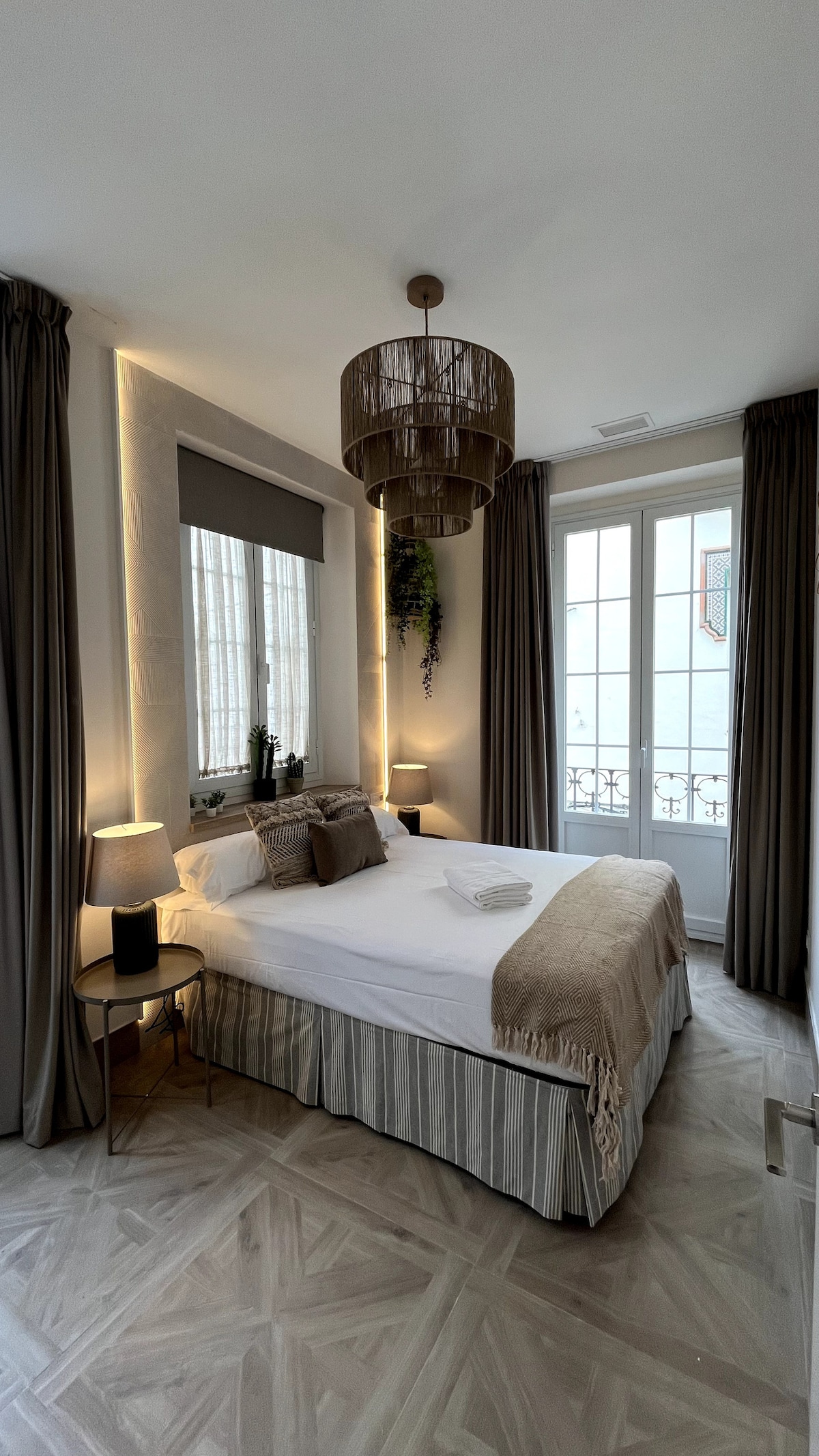 Magnífico dúplex en planta baja situada en el barrio de Santa Cruz, en un entorno inigualable y a cuatro minutos andando de la Giralda. Tres dormitorios, dos cuartos de baño y cocina equipada. Tiene todo lo necesario para hacer de la visita a Sevilla, una experiencia inolvidable. Su localización en un barrio histórico con calles estrechas hace que haya poca luz y humedad en el ambiente . Es algo normal si tenemos en cuenta que está asentado en un barrio construido en la Edad Media .