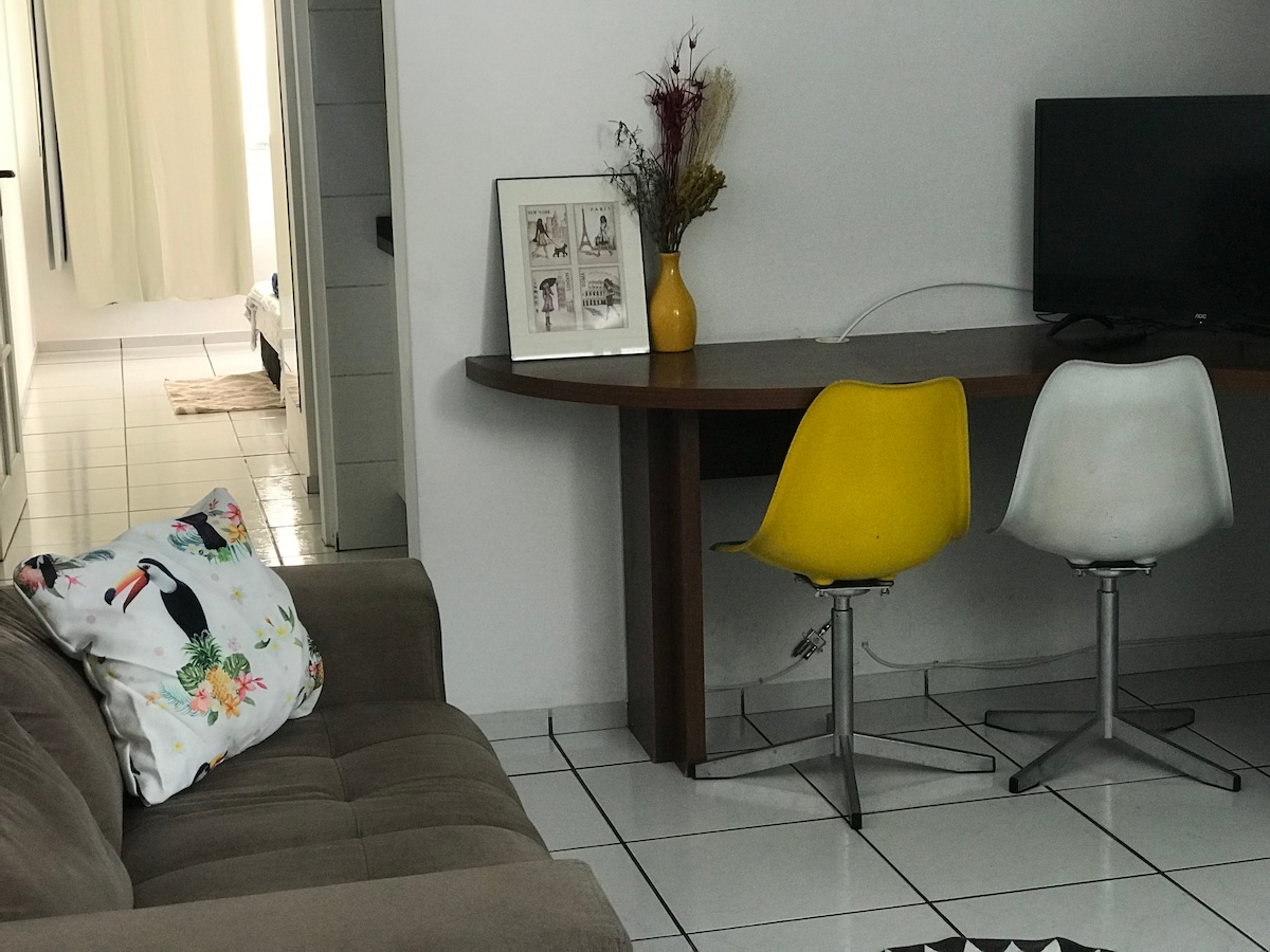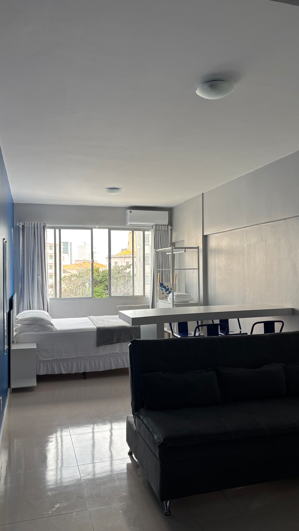 Looking for a cozy checkpoint in the heart of the city? You'll feel at home in this well-planned loft. Located in downtown Florianopolis, it's perfect for someone looking to explore the island or attend to an event nearby. Includes: - Queen bed - Complete gourmet kitchen - Washer and drier - Big table for meals and Home Office - 360 Rotational TV so you can watch from anywhere in the loft - Clean and modern bathroom - Wi-fi - Complete air conditioning