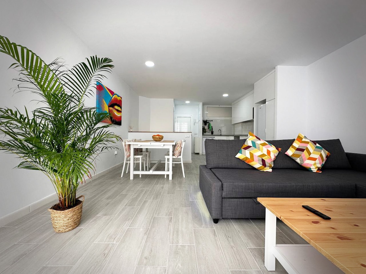 Enjoy a stylish and comfortable stay in our newly renovated duplex in the vibrant heart of Triana, Las Palmas. This modern home features two cozy bedrooms, a spacious living room with a fully equipped open kitchen, a walk-in closet, and convenient laundry facilities. Perfectly situated close to shops, restaurants, and local attractions, it's ideal for families, holidaymakers, and digital nomads. Experience the lively culture of Triana while enjoying the comfort of our well-appointed duplex.