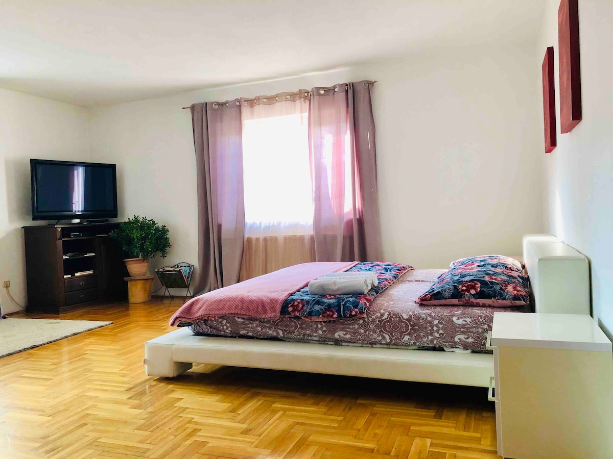 New and modern spacious light apartment on 2 th floor in the near of Zagreb. The apartment consists sharing entrance hallway, living room whit balcony, kitchen with dinning area, sleeping place, and bathroom with terace. Apartment is air conditioned, with central heating, furnished with modern light shades, all kitchen appliances, Smart TV, washer in the bathroom and wireless internet. Distance from Zagreb is about 20 minutes with car to edge of city or 15 minutes whit train to city center.