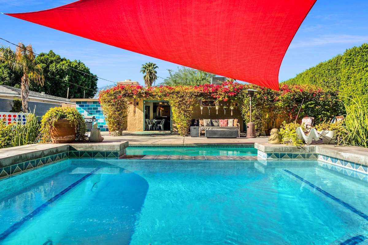 A healthy, holistic, and organic retreat home, all to yourself. Super private (birthday suit level) saltwater pool & hot tub with an organic garden growing fresh herbs and seasonal vegetables. Natural body products, organic bedding, towels, and robes are available. Warm desert air, blue skies, and mountain views from the front and rear yards in this very private Palm Springs retreat, perfect for just you or your friends & family to create new memories. City ID # 4235 TOT Permit#7315