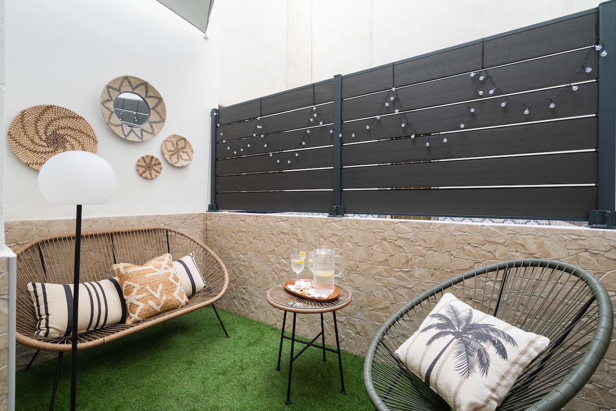 Disfruta Almería desde este nuevo apartamento con un diseño moderno y elegante, en el encanto y tranquilidad de una casa típica familiar almeriense, luminosa y céntrica de fácil acceso, equipada con todas las comodidades para que te sientas como en casa. Relájate con tu mejor compañía en su amplio patio. Parking publico 100m, situada entre la Alcazaba(1,4 Km) y la playa del Zapillo(1.8Km). Ubicada perfecta para descubrir Almería Super 365 días y todo tipo de servicios en sus inmediaciones.