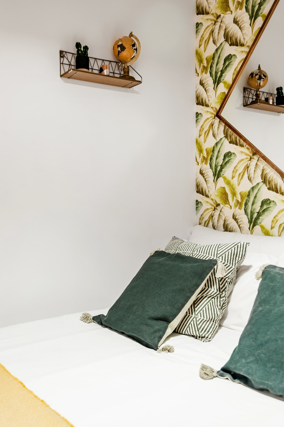 Sleep like a dream between high-thread-count sheets, opening the bedroom's double doors the next morning to access the Juliet balcony, with its city view. The mid-century modern decor includes bright color splashes, plus designer floor lighting.