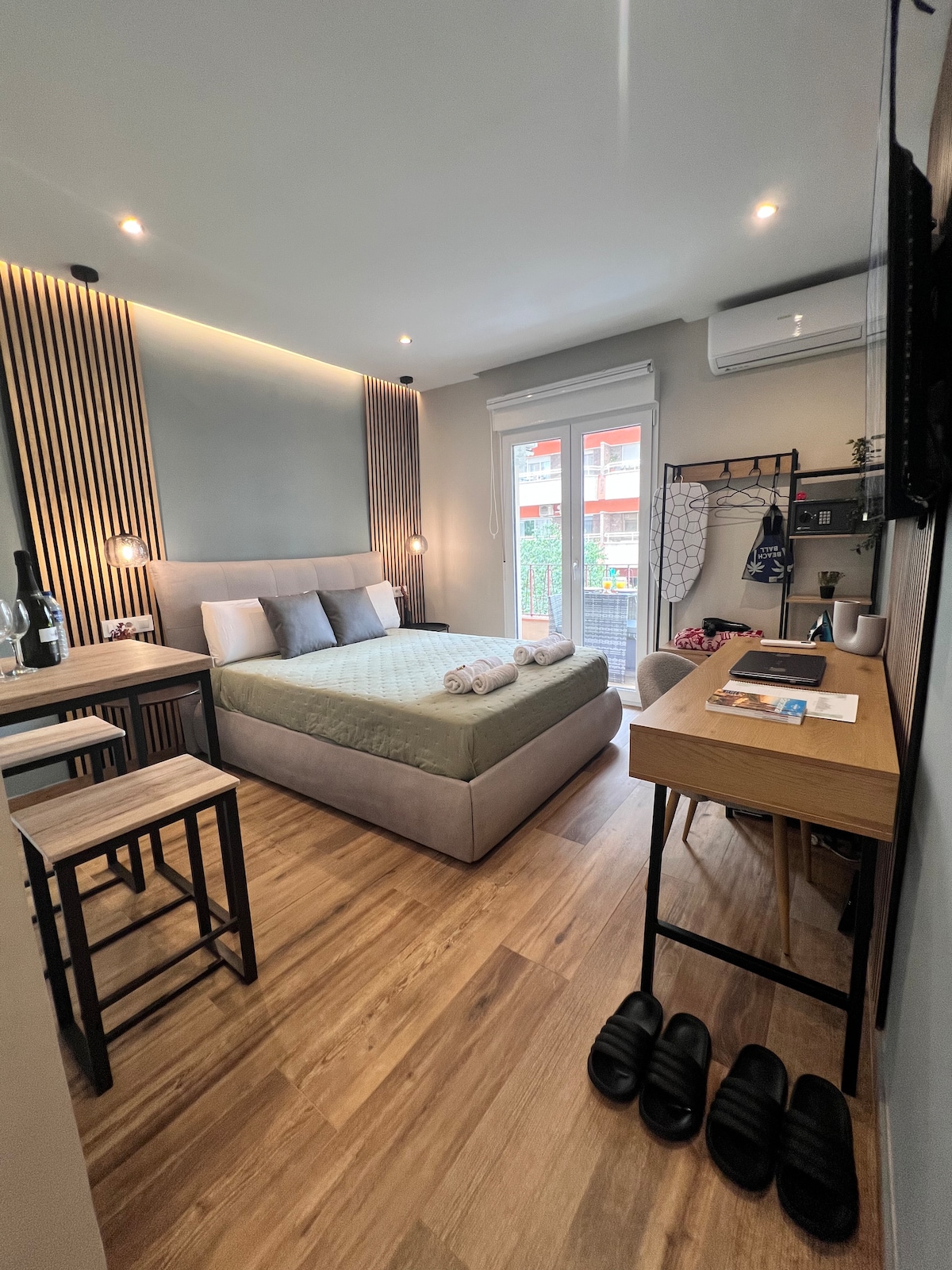 The apartments, delicately restored, have a maximum capacity of two people, are equipped with a queen size bed (1.60 m x 2.00 m) and a sofa. Large windows let in natural light in a quiet urban setting. They have a living-dining room, bedroom, fully equipped kitchen and bathroom with shower. The interior colors convey freshness, tranquility, confidence, well-being, positive energy, stimulate creativity and reading. TOURIST TAX: 6.88€ per night per person, for up to 7 nights (adults only).