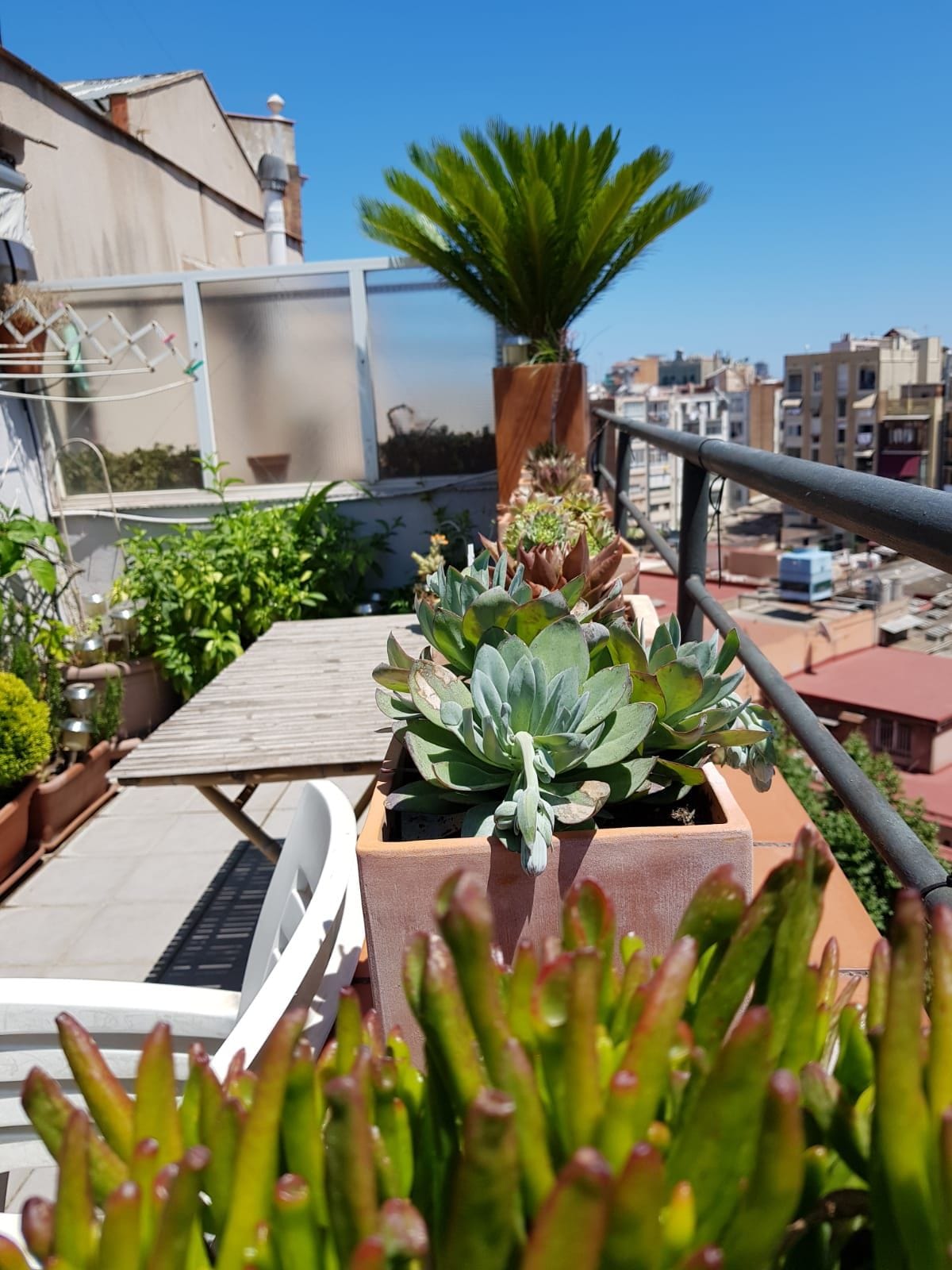 Fantastic, modern, centric penthouse with a luxurious terrace and views to the Sagrada Familia. There are 2 double beds and a big sofa-bed for 2 people (Totaling 6 people). Modern kitchen and bathroom, and nice light. Close to metros and buses and one block away from the Sagrada F.