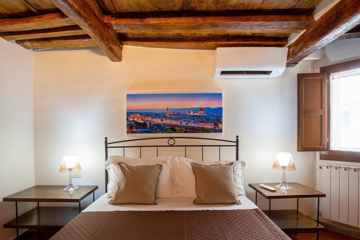 WELCOME TO FIESOLE IN GIARDINO HOME 🌿 Enjoy a peaceful stay in Fiesole, the charming hill overlooking Florence. A small independent house with bedroom, kitchen/living area and private bathroom, fully renovated and surrounded by greenery. Breakfast is included in the price. During spring and summer, breakfast is served on the panoramic rooftop terrace with a beautiful view.