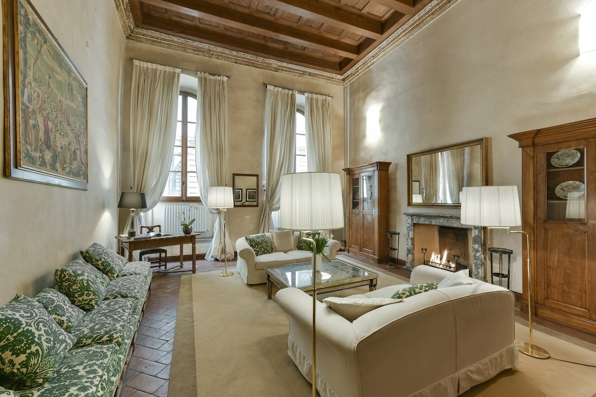 L’appartamento è in un silenzioso ex convento del XVI secolo e si trova nel cuore di Firenze accanto a via Tornabuoni, la via delle boutique più famose ed è circondato dai migliori ristoranti. L’appartamento grazie all’elegante ristrutturazione è dotato di rifiniture di pregio come gli splendidi marmi dei 2 bagni o l’affascinante camino a gas e di tutti i confort wi-fi, ac e cucina moderna completamente attrezzata. Le maggiori attrazioni turistiche si raggiungono in meno di 10 minuti a piedi.
