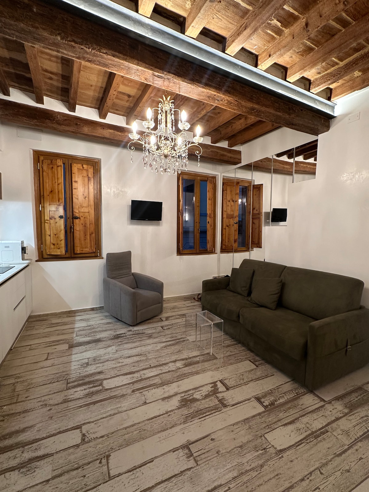 Soggiornare in questo appartamento significa vivere Firenze nel suo punto più iconico: il Ponte Vecchio. Qui, ogni vetrata è una cartolina e ogni passo ti porta nel cuore pulsante della città. L’appartamento è luminoso, curato con gusto e progettato per offrire un’esperienza autentica e confortevole. Gli interni uniscono eleganza italiana e dettagli moderni: colori caldi, arredi raffinati e un’atmosfera accogliente che fa sentire subito a casa. La posizione è semplicemente impareggiabile.