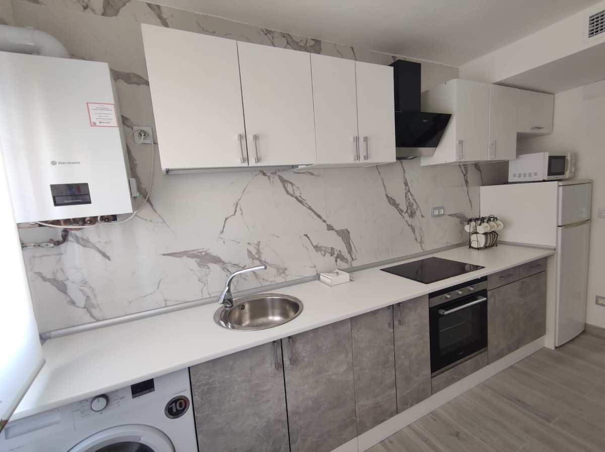 Disfruta de la sencillez y elegancia de este tranquilo, nuevo y luminoso alojamiento en el corazón de Zaragoza. ¿Quieres conocer El Pilar y El Tubo (zona de bares)? ¡Estás a cinco minutos! ¿Ir más lejos? ¡El Tranvía te lleva! ¿Descansar? Las habitaciones y el salón están diseñados para relajarse. ¿Espacio para trabajar? Dispones de dos escritorios. ¿Prefieres cocinar? Hay una cocina equipada y el Mercado Central a dos minutos. ¿Mejor?: ¡Imposible! (Importante acordar tu hora de llegada)