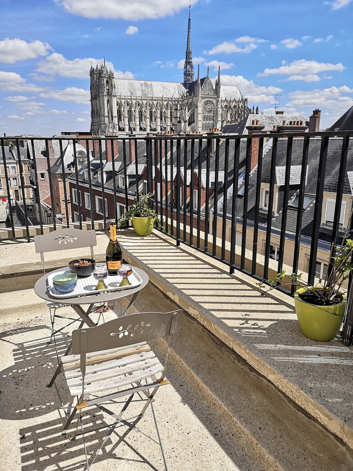 Appartement T2 avec vue unique sur le Cathédrale Notre Dame, en hyper centre piéton d'Amiens. Un balcon ensoleillé. Vue sur la tour Perret et Palais de justice, le marché de Noël et la réderie. Idéalement situé, nombreuses boutiques et restaurants à proximité, 7 minutes à pieds de la gare centrale et 1 minute du Cathédrale Notre Dame. Parking à proximité. Un endroit idéal pour un week-end en amoureux, en famille ou pour le travail. WiFi HD Le logement ne convient pas aux enfants ni aux bébés