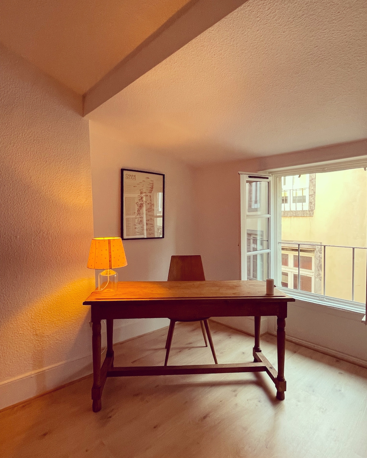 Notre petit appartement est situé dans le cœur historique de Clermont-Fd, au 2è et dernier étage d’un immeuble ancien devant une placette arborée. Nous avons soigné sa décoration afin de lui donner une âme, de créer une atmosphère chaleureuse et sereine. Un balcon spacieux permet de manger dehors aux beaux jours. La vue est dégagée. Appartement lumineux. Lit queen size de qualité. Idéal pour 2, mais possible pour 3 personnes avec une banquette comme lit d'appoint dans le salon (me contacter).