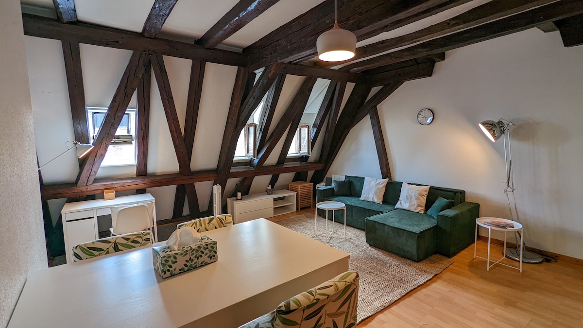 Beautiful spacious loft in the very heart of Strasbourg, on the top floor of a historic building with panoramic views over the city's main square - Place Kleber. It is ideally located to enjoy in tranquility the vibes of the old town and Strasbourg's main Christmas tree if you are visiting in winter. Bright, modern, and spacious. Fully equipped with everything you might need and surrounded by countless restaurants, cafés and main shopping area.