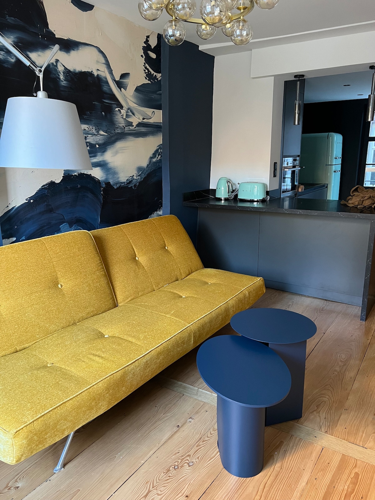 Centre historique, 2ème étage avec ascenseur. 3 pièces 70 m2 rénové, chaleureux, confortable et design. 2 salles de bain et 2WC, très bonne literie King Size ou 2 lits simples. Un canapé lit 140/200 permet de loger 2 personnes sup. au salon. Idéal entre collègues ou copains ou pour famille jusqu’à 6 personnes. Cuisine eq. complète neuve, rangements. TV &Wifi avec connection fibre optique high speed . Location minimum de 2 nuits.