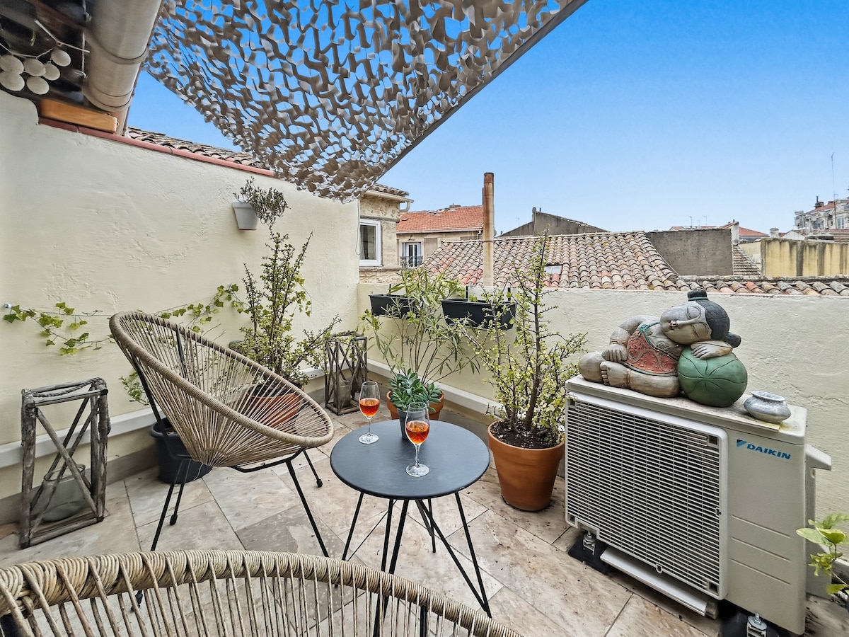 🍃 L'Éden Zen – Suite Natura 🍃 – Un havre de paix situé sur la Place Jean Jaurès, la place centrale de Béziers ! Laissez-vous séduire par le CHARME unique de "L'Éden Zen" – votre Suite personnelle qui allie harmonieusement confort moderne et tranquillité naturelle. Nichée au pied de la place JEAN JAURES, centre de l'animation urbaine. Cette suite d'exception vous invite à une échappée belle où chaque détail a été pensé pour votre bien-être.