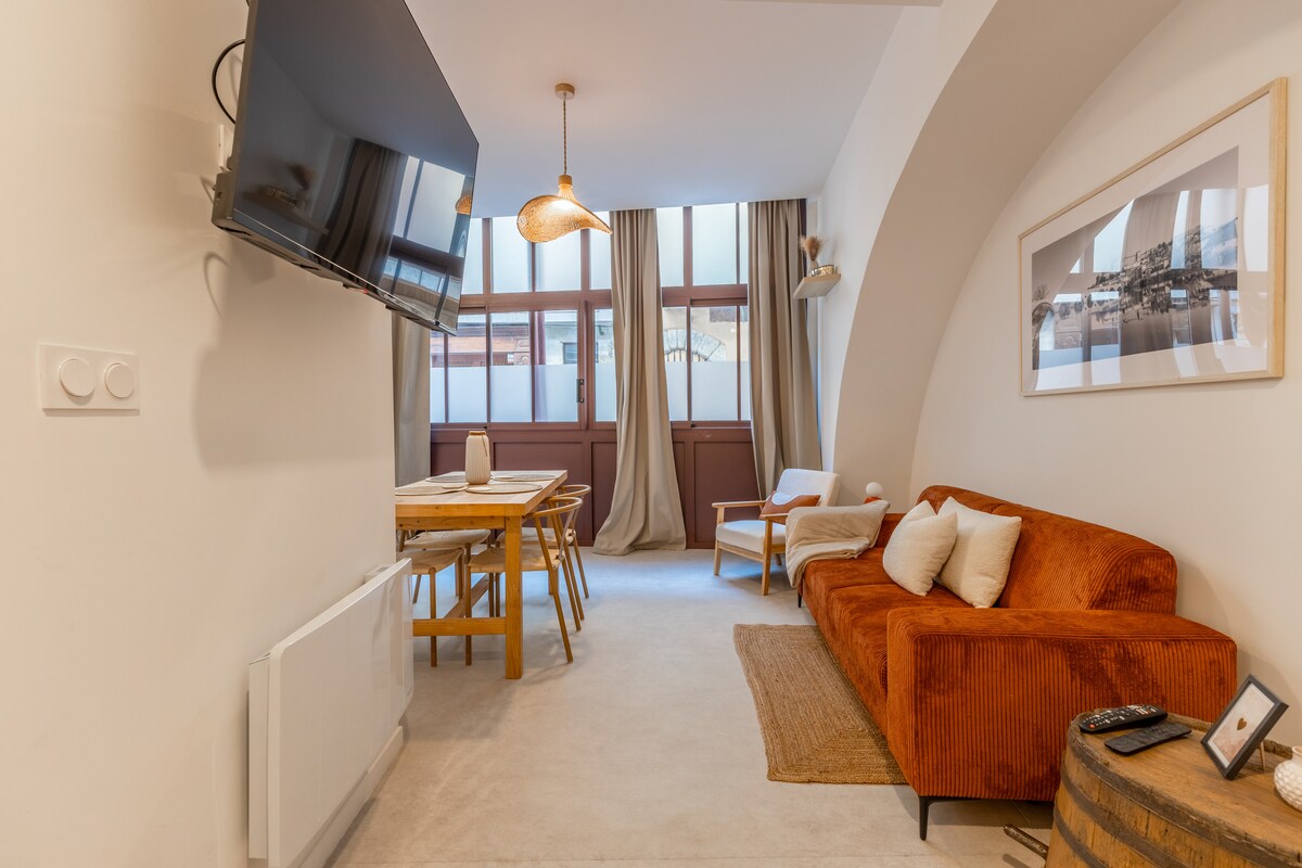 Welcome to your chic urban escape next to Les Halles, voted "France's most beautiful market 2025"! This stylish 70sqm two-bedroom apartment sits at the third floor and boasts modern comforts like air conditioning. Enjoy the convenience of an integrated kitchen and Nespresso. Located steps away from the bustling Halles farmer's market featuring some of the best food experiences in the region and the majestic Saint-Nazaire cathedral, immerse yourself in the heartbeat of 'France's oldest city'.