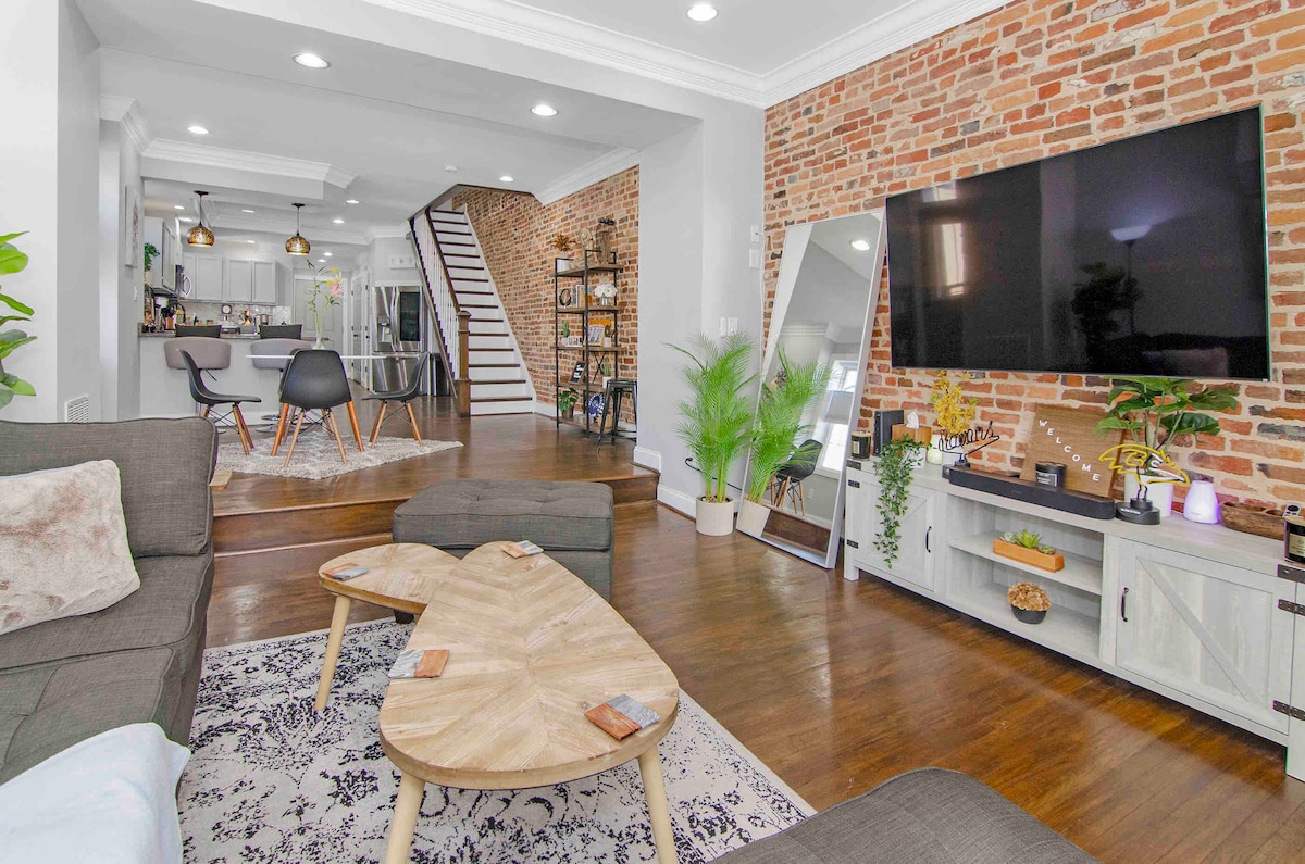 To see the "Before" and "After": @InvestWithFFI Welcome to THE BRICK HOUSE, A Baltimore Love Story! The Brick House combines real historic exposed brick with jaw-dropping 10 ft ceilings and 1800 square feet of a modern open concept for an experience that has been meticulously crafted with you in mind. Whether you're in town for a couple of days, a week, or even a few months, we welcome you to an authentic Baltimore experience full of peace and tranquility in the heart of the city.