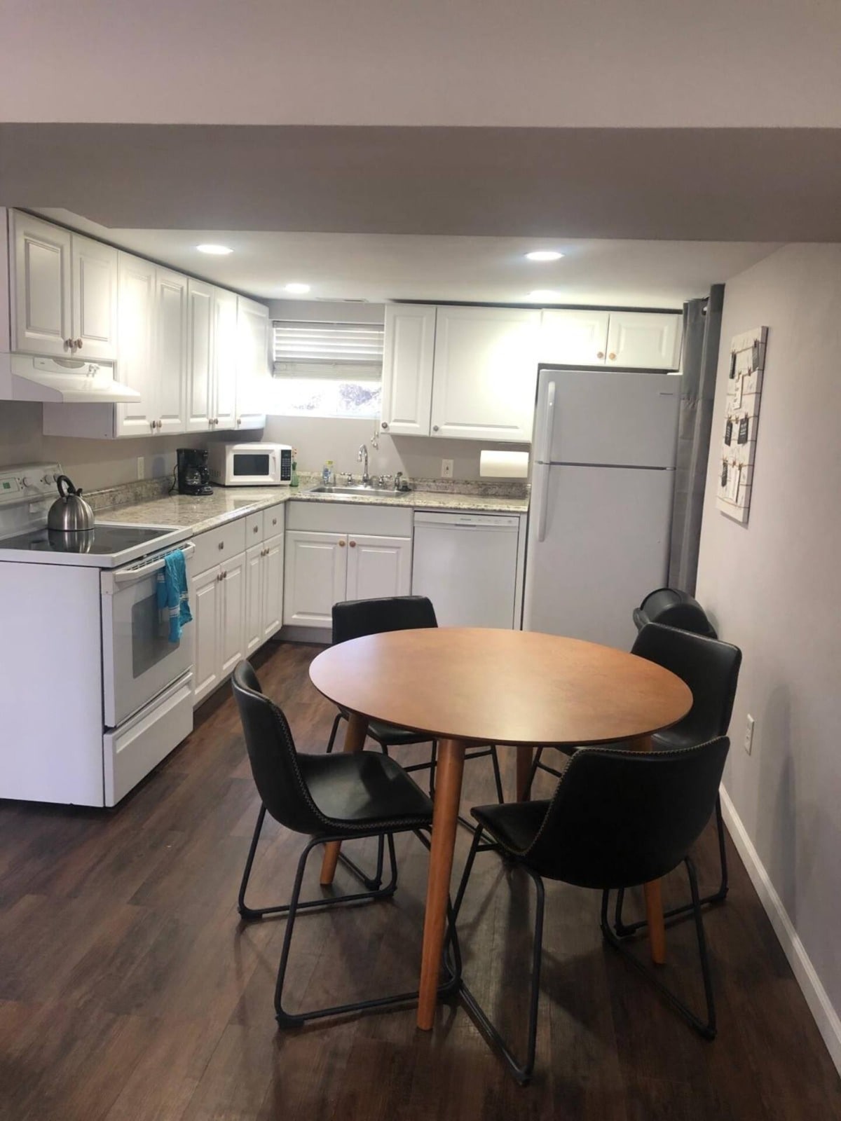 Entire basement only not the entire house. A basement apartment recently renovated with 2 bedrooms, luxurious full bathroom, powder room, full kitchen, dining room, living room, laundry in the unit, private entrance, private parking (max 2 cars). Host lives upstairs with 1 dog (labradoodle). Everything in the basement is not shared with the host. Pets allowed with $75/trip fee, no fee for service dogs (Note: emotional support animals are pets) 0.5 mile from I-95, 20 minutes from BWI airport.