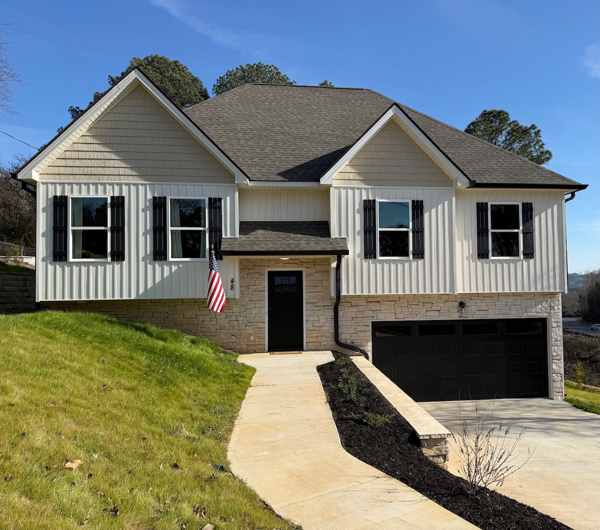 Welcome to our slice of country within the Chattanooga Valley. This modern farmhouse is brand new and is centrally located. Located 2.5 miles from Camp Jordan and 10 miles from Downtown Chattanooga. This 4 bed/3 bath home boasts a functional layout perfect for family and friends and will comfortably sleep 8 guests. Home resides on a gorgeous 1.5 acre property with outdoor amenities:grill and patio seating and rocking chairs are available for you to relax and take in the country sounds.
