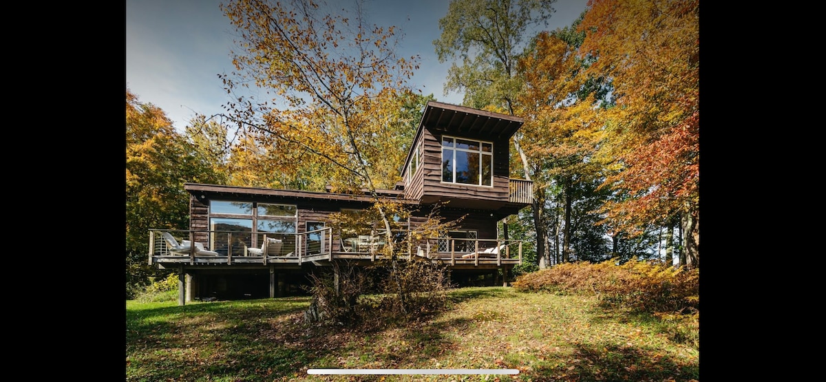 平均评分 4.97 分(满分 5 分),共 34 条评价现代卡茨基尔山度假屋,带热水浴缸、小溪和景观