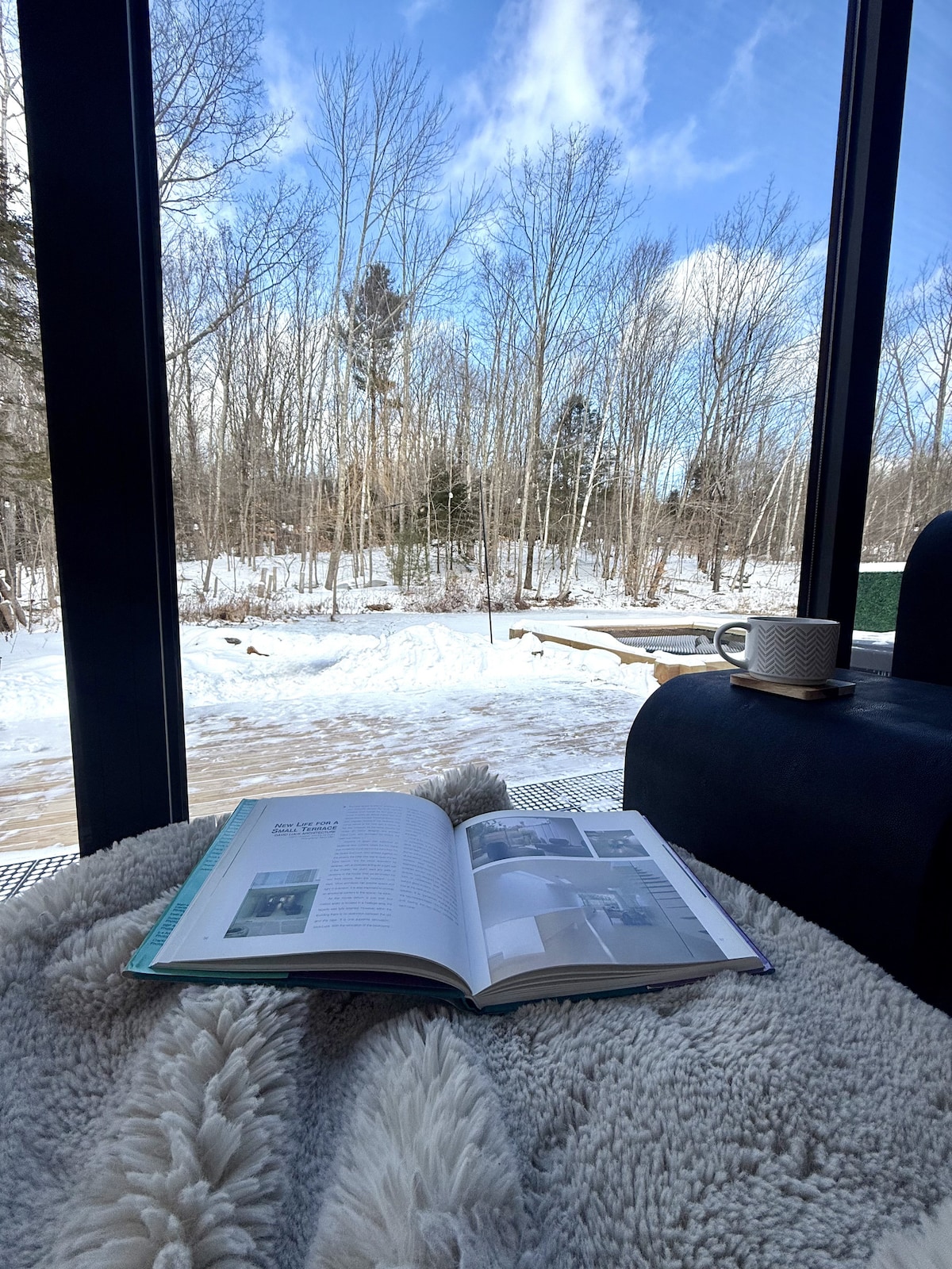 Modern and spacious house located in the woods, surrounded by nature will make a perfect getaway. Wide open layout with a large living room/kitchen area in the center of the house, 2 Massive suites, one on each side overlooking the woods, both with comfy king bed and private bathroom - perfect for 2 couples, and suitable for a family as well. Beautifully designed with high end finishes, white oak flooring, custom made kitchen and toll ceilings, as well as cozy fireplace for warm nights.