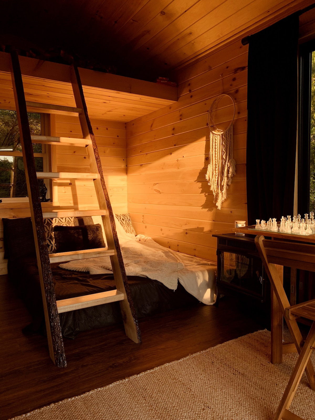 Take it easy at this unique and tranquil getaway themed after The Great Smokey Mountain National park! This newly built cabin gives you all the modern conveniences in a small and warm comfortable package. Sit on your covered porch and enjoy beautiful sunsets totally immersed in wildlife that frequently walk right in front of your cabin. Or sit and enjoy a fire in your fire pit and watch the sunset. If you’re looking to Relax in the country away from it all in a place of your own this is it!
