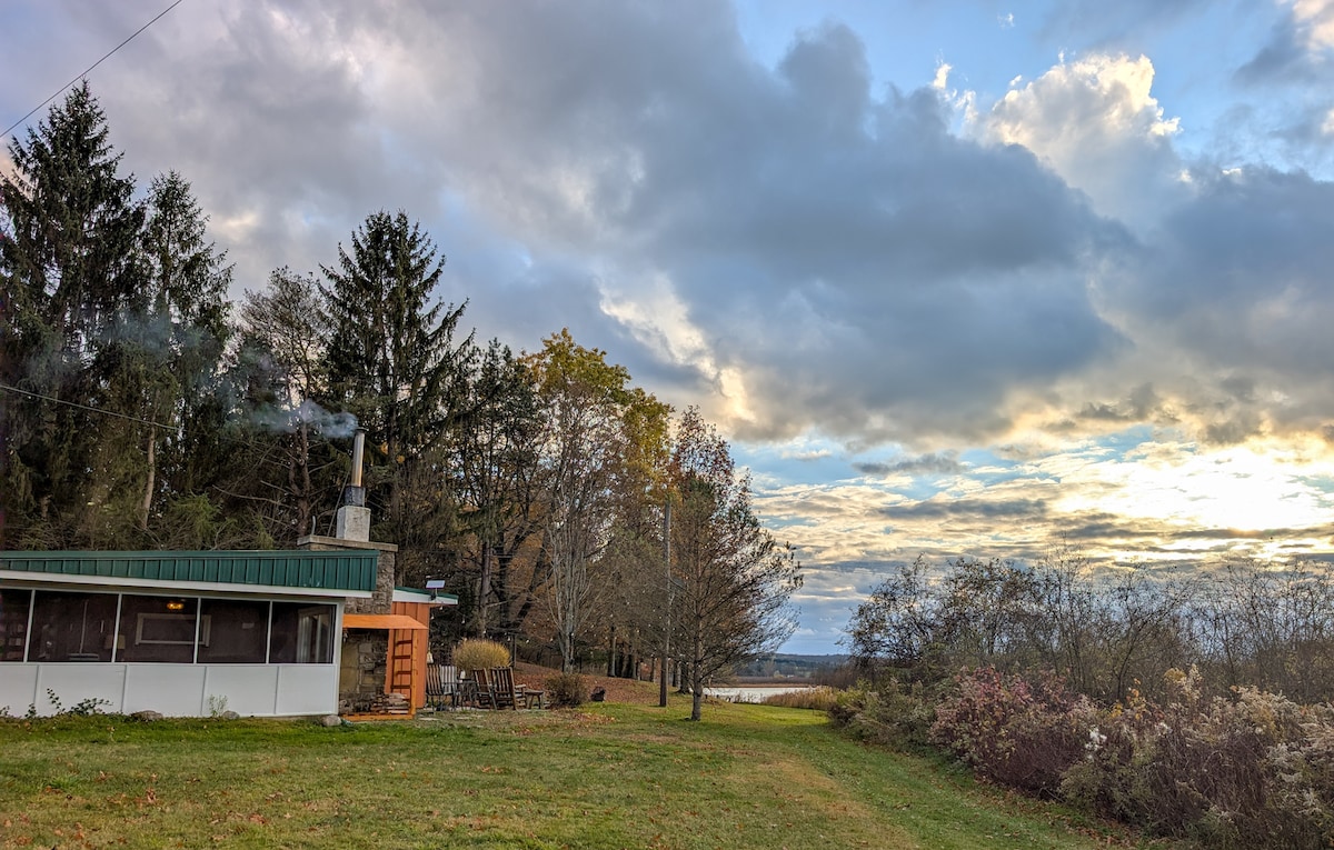 Cozy, semi off-grid cabin on thirteen acres of private woods with a lake view. Quiet and peaceful yet only 3 miles from all of the attractions of Holiday Valley Resort with year round activities and the village Ellicottville with great nightlife. Surrounded by nature, it's the perfect spot for relaxing after a day of adventure. Cozy up to the wood stove in winter after skiing or walk the woods in summer and toast marshmallows on the huge fire pit. *Note: outhouse and porty potty, no shower*