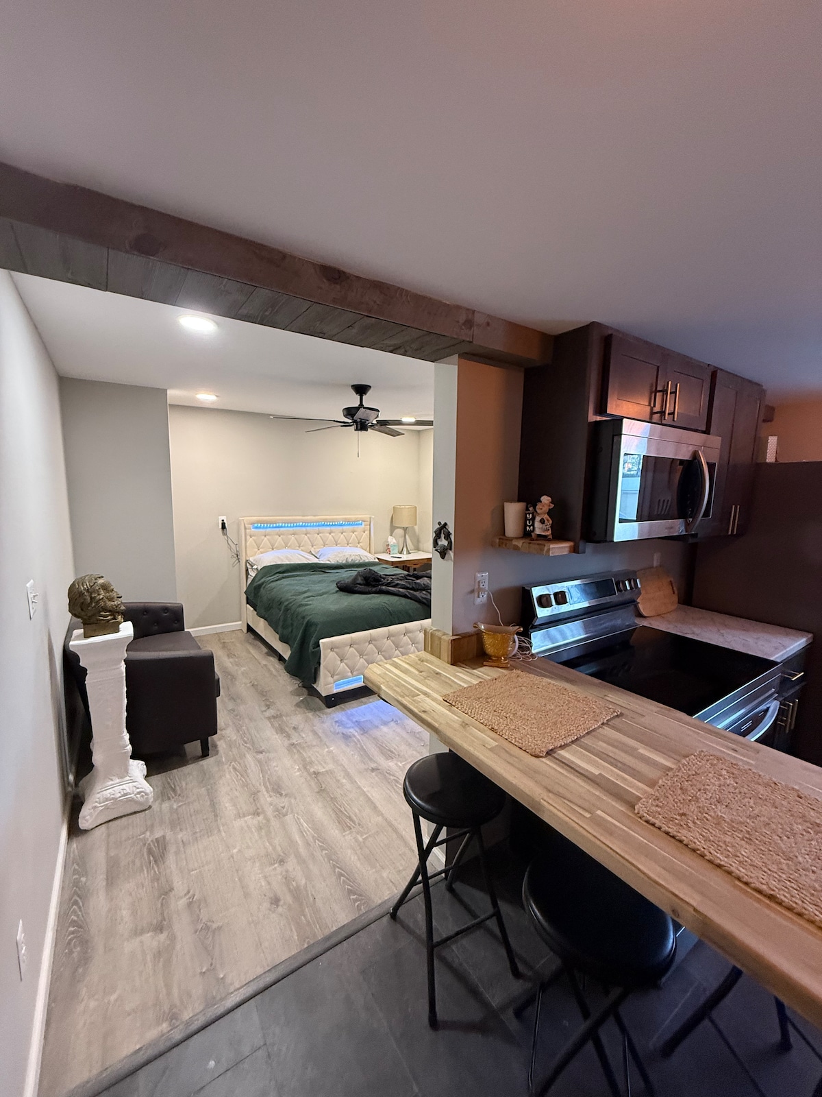 Stylish, entire residential 3 bedroom/ 1 bath home. Close to Ellicottville/skiing -30 mins., St. Bonaventure University, Cutco, Rock City Park, Allegany State Park, kayak launch, biking, and walking trail. Niagara Falls is a 1.5-hour drive, Zippo 30 minutes. Walmart and movie theater are 2 miles away. Many restaurants are nearby. A seasonal 2 screen drive-in movie theater-20 min. drive. 2 queen beds , 1 double bed, and a chair converts to a twin size bed. Fully equipped kitchen.