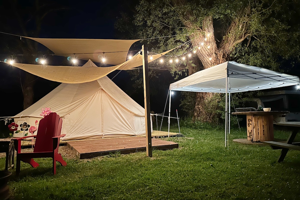 Creekside 豪华露营钟形帐篷 | 篝火与星空