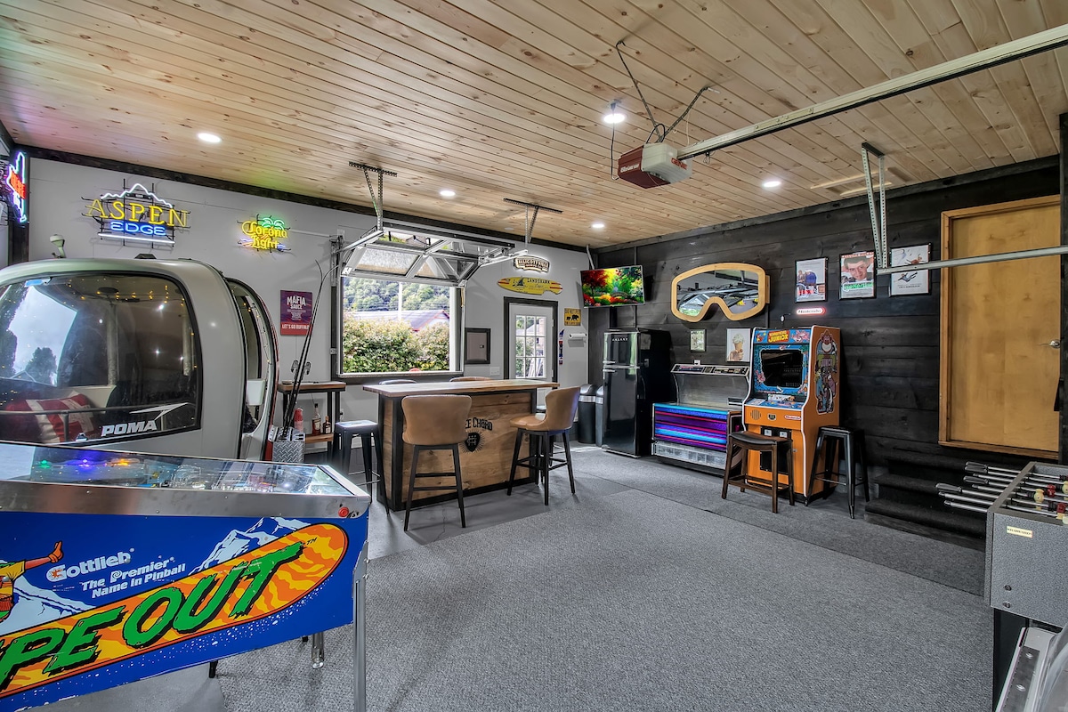 Experience the ultimate Ellicottville location! Newly renovated private home located perfectly between Holiday Valley Ski & Golf Resort & lively Ellicottville village- quick walk to either. Ideal for 2-3 families, featuring slope views from the hot tub, patio, fenced-in yard, and luxurious bedrooms. Also enjoy the fully loaded arcade and bar room with vintage games and jukebox, modern & open living areas, and chef's kitchen. The perfect blend of location, comfort, fun, and convenience awaits!
