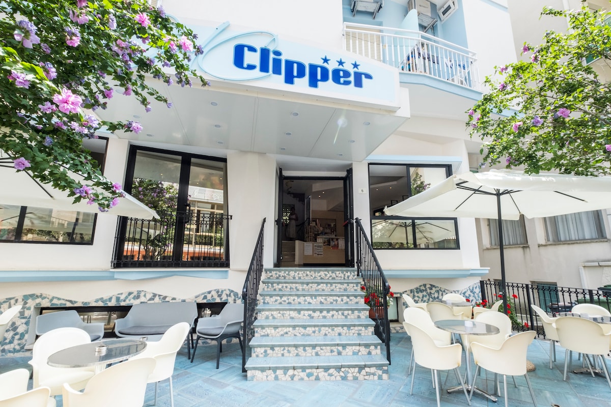 Spazio e vista nel cuore di Riccione! 🌊 Camera quadrupla a 100m dal mare con balcone in vetro affacciato sul viale principale. Dotata di Smart TV, Wi-Fi veloce, tapparelle elettriche e frigobar libero. ⚠️ Nota: Bagno completo con bidet e box doccia (cieco o finestrato secondo disponibilità). Ascensore vintage molto piccolo ↕️. Il nostro plus? 🍳 Area Food: cucina comune al piano rialzato. ☕ Caffè: 0,50€! 🥐 Brunch: a 10€ (a 180m). Apertura smartphone 📲 e reception h24. 🚀