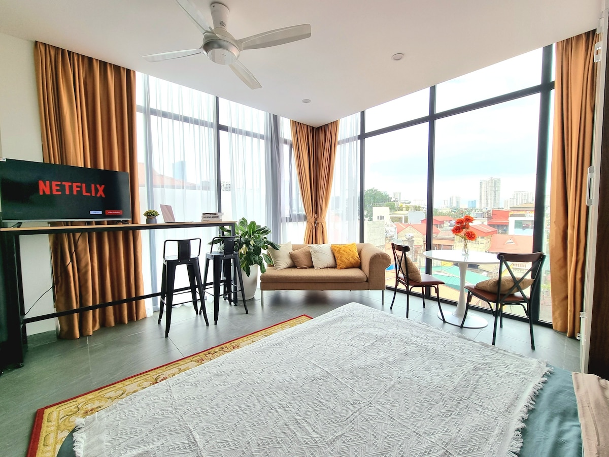 ✨ Spacious 100m² Luxury Studio – 7-Min Walk to Westlake ✨ Enjoy upscale living in this expansive 100m² studio in Tay Ho, just a short 7-minute walk from Westlake. Steps away from local street food, cozy cafes, and supermarkets, it’s the perfect spot for singles or couples. 🛋️ Modern Comfort – Professionally designed with high-end furniture and appliances. Fully furnished for short or long stays. 💬 24/7 Support – We're here to help anytime during your stay!