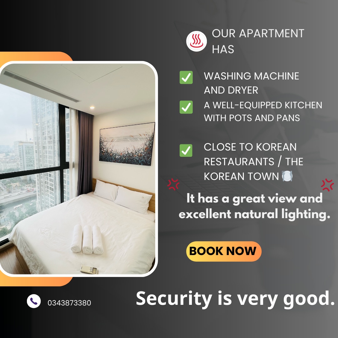 Căn hộ là của bạn trong suốt thời gian bạn ở trong căn hộ. Bạn có toàn quyền sử dụng các trang thiết bị, vật liệu trong căn hộ - Bên cạnh đó: + Căn hộ nằm trong tòa nhà TONKIN1 của Vinhome SMART CITY + Chúng tôi luôn sẵn sàng hỗ trợ bạn 24/7. Ngay cả khi bạn gặp bất kỳ vấn đề gì trong thời gian lưu trú tại căn hộ, tôi sẽ luôn sẵn sàng hỗ trợ bạn bất cứ lúc nào. + Căn hộ có an ninh hiện đại nhất, bạn có thể tự do đi lại và tự nhận phòng