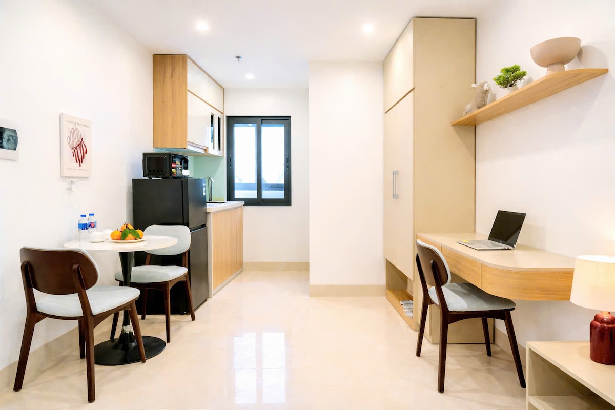 Mình rất vui khi được chào đón bạn đến với căn hộ của chúng tôi Tòa nhà mới, với diện tích 26m2 nhỏ xinh, nhưng đầy đủ tiện nghi Giường đệm êm là một điểm cộng. Các bạn sẽ thoải mái có được một nơi lưu trú tại trung tâm và riêng tư Hãy liên hệ cho chúng tôi khi bạn cần căn hộ cho thuê ngắn ngày và dài ngày nhé. Căn hộ đã sẵn sàng ngay bây giờ Mrs Thảo:
