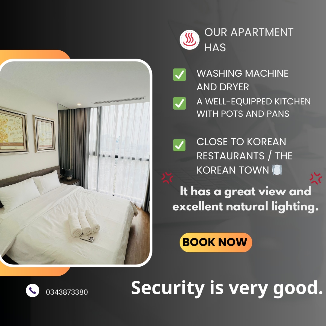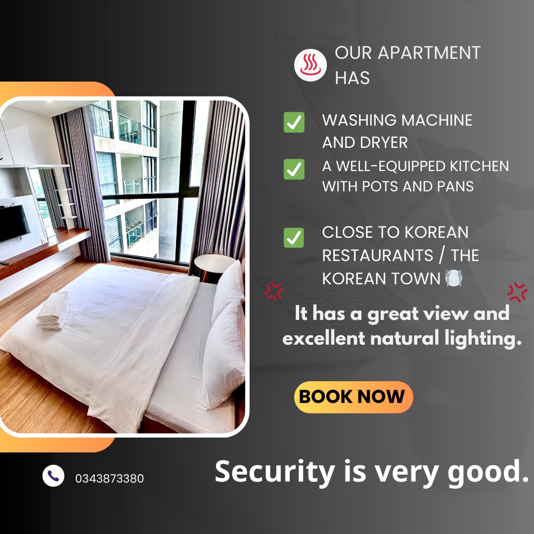 Welcome to the Sumitomo2 Apartment - Dao Tan building. The apartment is designed with 1 separate bedroom, 55m2 wide, 3 open sides. The apartment is newly designed in a modern style and fully furnished: such as smart TV, 2-way air conditioner, bathtub, automatic toilet, water heater, bedding, towels, cooking utensils. ...... guests only bring suitcases to stay. We always maintain daily cleaning and laundry services for customers, high-speed internet, Japanese TV, drinking water...