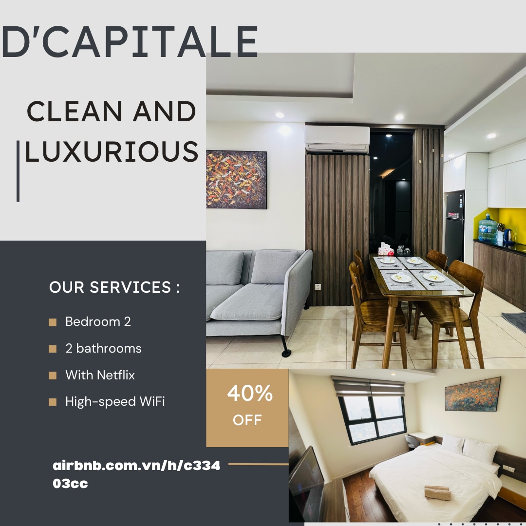 Vinhomes D’Capitale – Nơi mỗi ngày đều là kỳ nghỉ 5★ 🌟 Tại vị trí vàng giữa trung tâm Hà Nội, D’Capitale mở ra thế giới sống sang trọng với hồ bơi xanh mát, phòng gym hiện đại, khu vui chơi trẻ em và hàng loạt tiện ích ngay dưới chân nhà. Căn hộ thiết kế tinh tế, tràn ngập ánh sáng, ban công view hồ và thành phố lung linh về đêm. Bước ra là phố, mở cửa là thiên nhiên. Sống tại D’Capitale, bạn không chỉ có một ngôi nhà – bạn có một đẳng cấp sống.