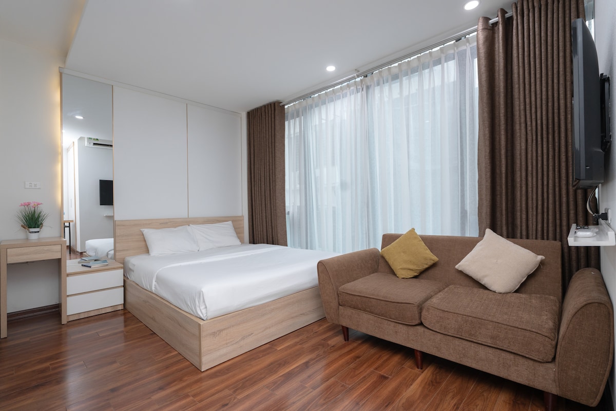 A part of Bao Hung Hotel & Apartments, this place is located in Cau Giay province where is the center of multiple high tech companies in Vietnam. We are proud to bring to you a model apartment with full high-end furniture, warm lights, a soft king-size bed which makes you feel like another home. Please come with us and enjoy your vacation.