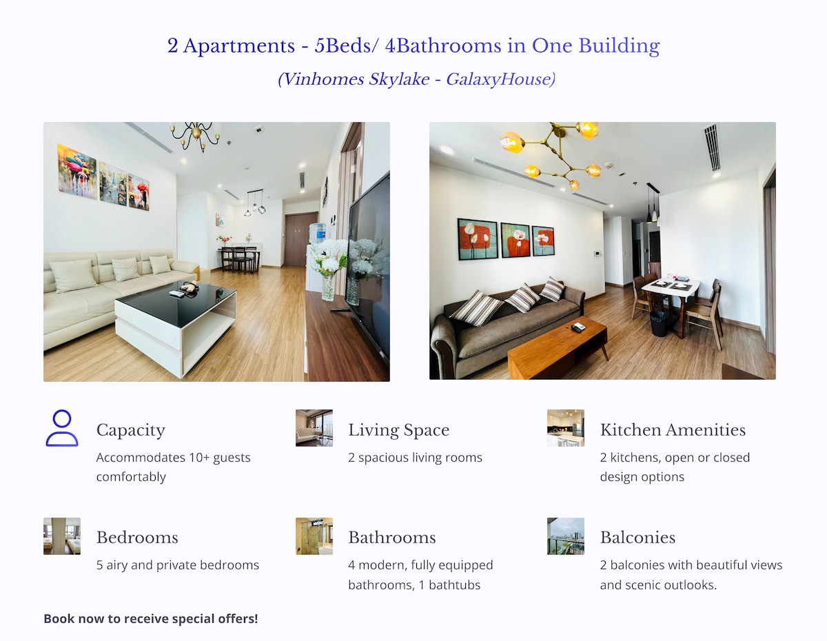 Hagi APT- Vinhomes Skylake Service Apartment - Căn hộ dịch vụ, homestay 2 phòng ngủ sang trọng tại khu đô thị cao cấp 5 sao - Vinhomes Skylake Phạm Hùng, Hà Nội. Không gian sạch sẽ, thoáng mát cùng tầm view vô cùng đẹp mắt ra toàn thành phố mang đến cho bạn những trải nghiệm vô cùng tuyệt vời tại đây. - Nằm tại vị trí trung tâm dễ dàng kết nối tới những địa điểm như: Keangnam, các khu mua sắm & vui chơi. Đặc biệt là các khu phố ẩm thực dành cho người Hàn.