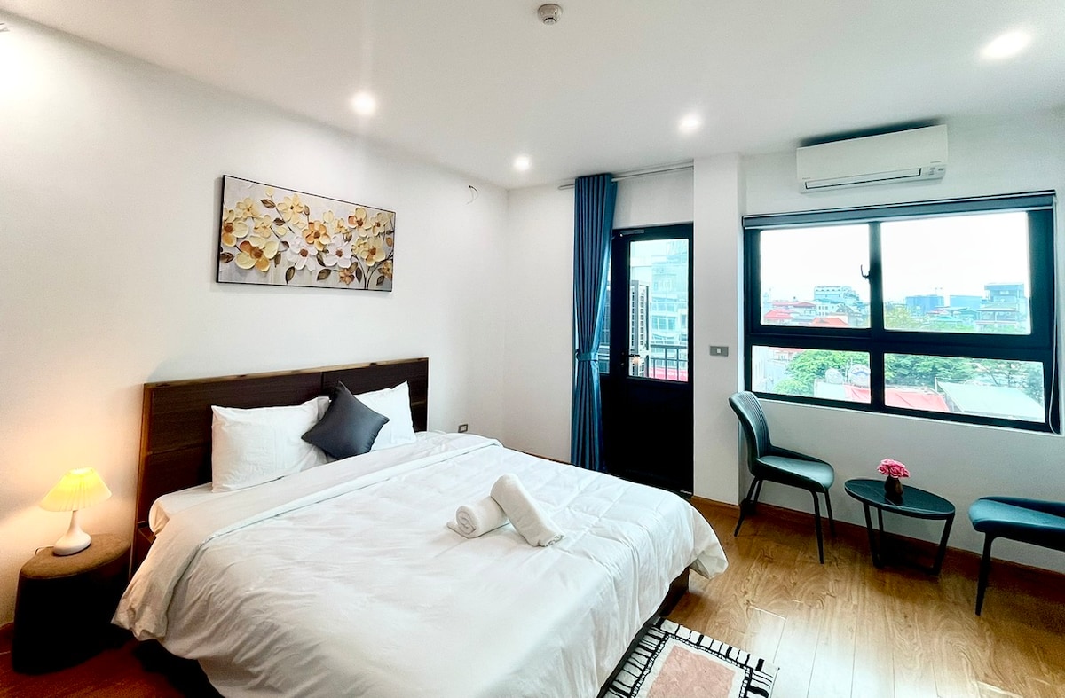 Nằm trong chuỗi căn hộ cao cấp D'capitale Trần Duy Hưng - tọa lạc tại vị trí trung tâm Hà Nội với nội thất sang trọng, tiện nghi, không gian thoáng đãng, ban công tràn ngập ánh nắng mặt trời, view hồ, an ninh hỗ trợ 24/7. Đây là điểm đến tuyệt vời cho các cặp đôi, gia đình hoặc du khách độc thân. Căn hộ hoàn toàn mới này có 1 giường cỡ queen, 1 giường đơn, phòng tắm riêng, phòng khách với ghế sofa thoải mái để bạn thư giãn với TV thông minh sau 1 ngày làm việc vất vả