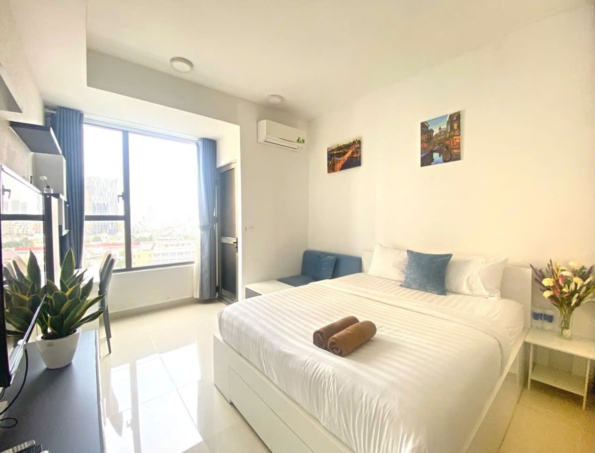 Brand New project which is located nearby with District 1 High-end and 100% newly studio with fully amenities including: infinity pool,sauna.,laundry, bathroom, free wifi, kitchen, dining table, co-working space, party room,... ★Estimated time by taxi - 10 minutes to Notre Dame Cathedral - 5 minutes to Ben Thanh Market - 5 minutes to Bitexco building - 15 minutes to The Landmark 81 building