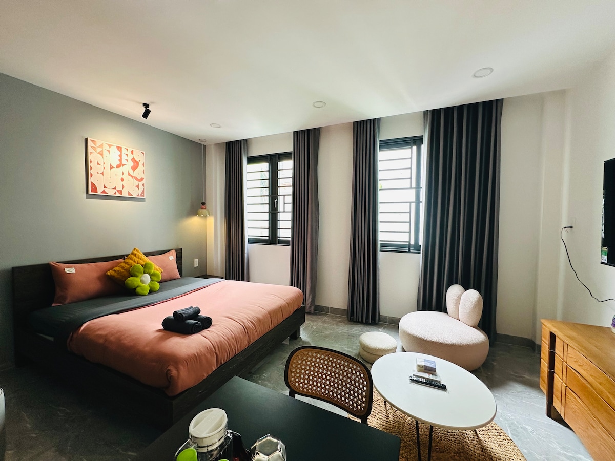 D.Signature by D.Homestay xin chào! Thức dậy trong căn phòng tràn ngập ánh sáng tự nhiên, được thiết kế theo phong cách tối giản tinh tế, mang lại cảm giác vừa hiện đại vừa ấm cúng. Phòng có giường queen-size êm ái, ban công xanh mát và nội thất được chăm chút tỉ mỉ. Phù hợp cho cặp đôi, khách công tác hoặc những ai tìm kiếm trải nghiệm lưu trú đẳng cấp ngay trung tâm thành phố.